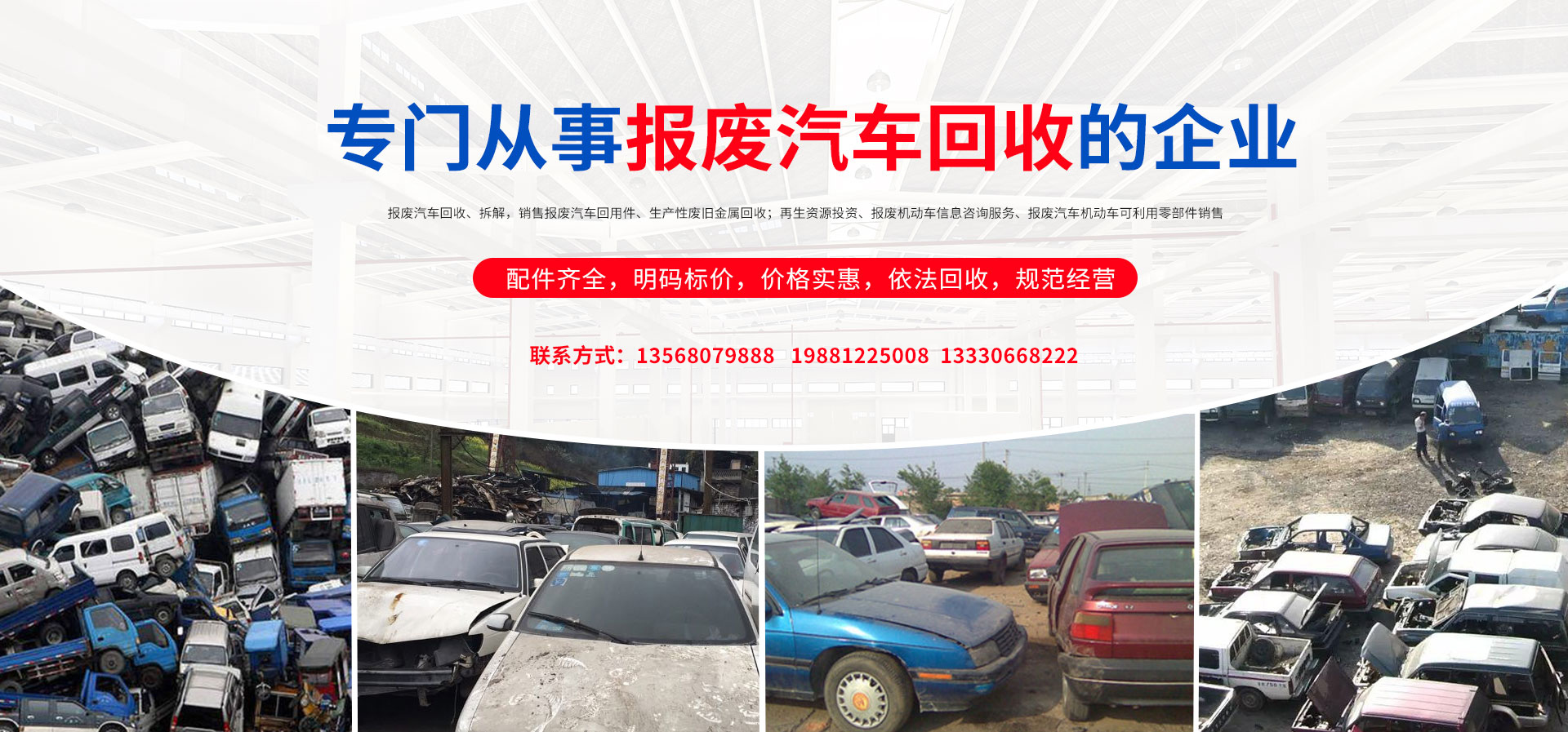 我公司在報(bào)廢汽車回收拆解中,認(rèn)真貫徹執(zhí)行國家法律法規(guī),嚴(yán)格執(zhí)行國務(wù)院令第307號(hào),積極開展行業(yè)自律,依法回收,規(guī)范經(jīng)營,從源頭上控制了報(bào)廢汽車整車、拼裝車、“五大總成”等上路和重新流入市場(chǎng)的現(xiàn)象,為緩解我市資源短缺,減輕環(huán)境污染,促進(jìn)資源循環(huán),維護(hù)人民群眾生命財(cái)產(chǎn)安全和道路交通安全起到了巨大的作用。